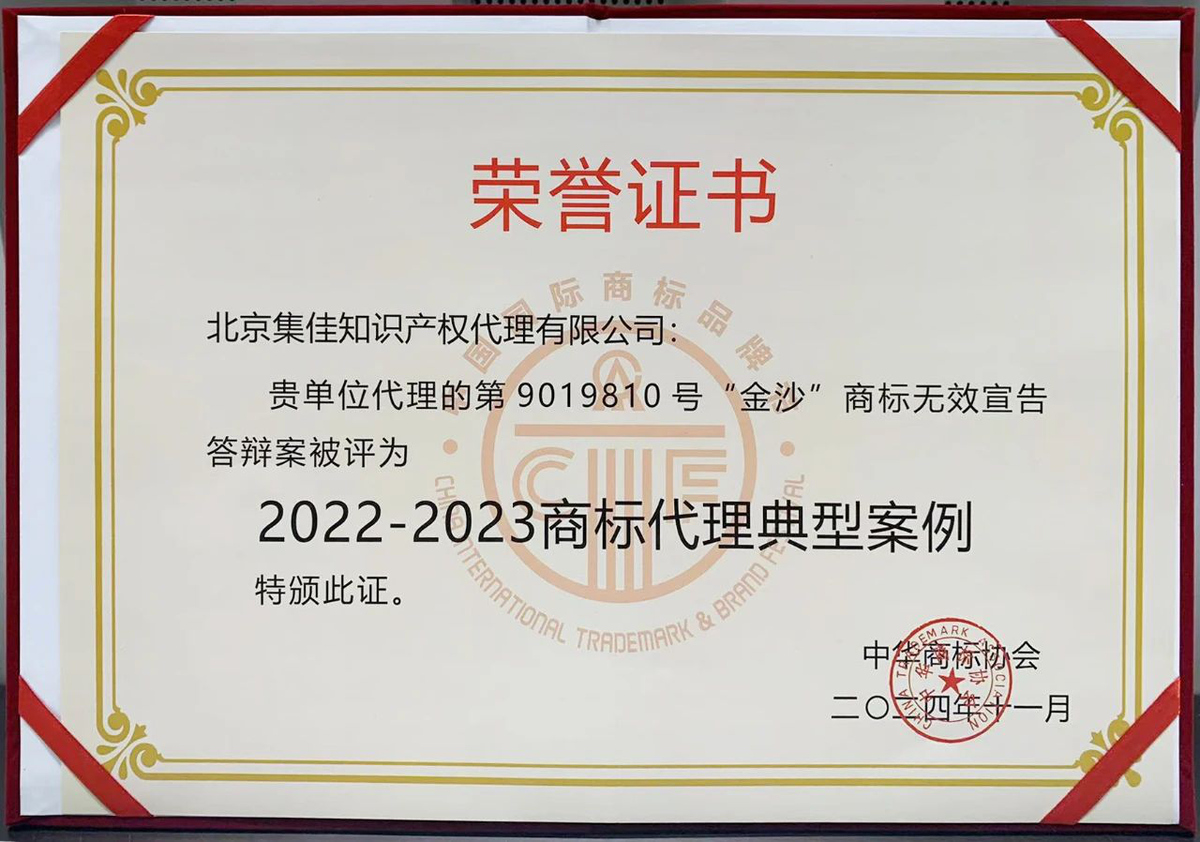 2024年11月24日下午,在商标节经典论坛之一的商标典型案例评析会议上,jiuyou代理的“金沙”商标权无效宣告答辩案入选“2022-2023商标代理典型案例”。